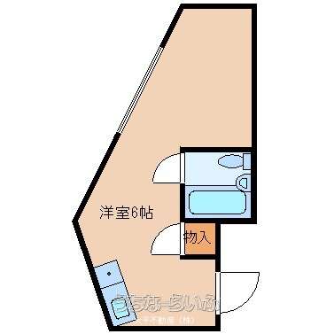 | 間取詳細 | 1ルーム( 洋6 )( ※ ベランダ無し、洗濯機置場無し ) | ||